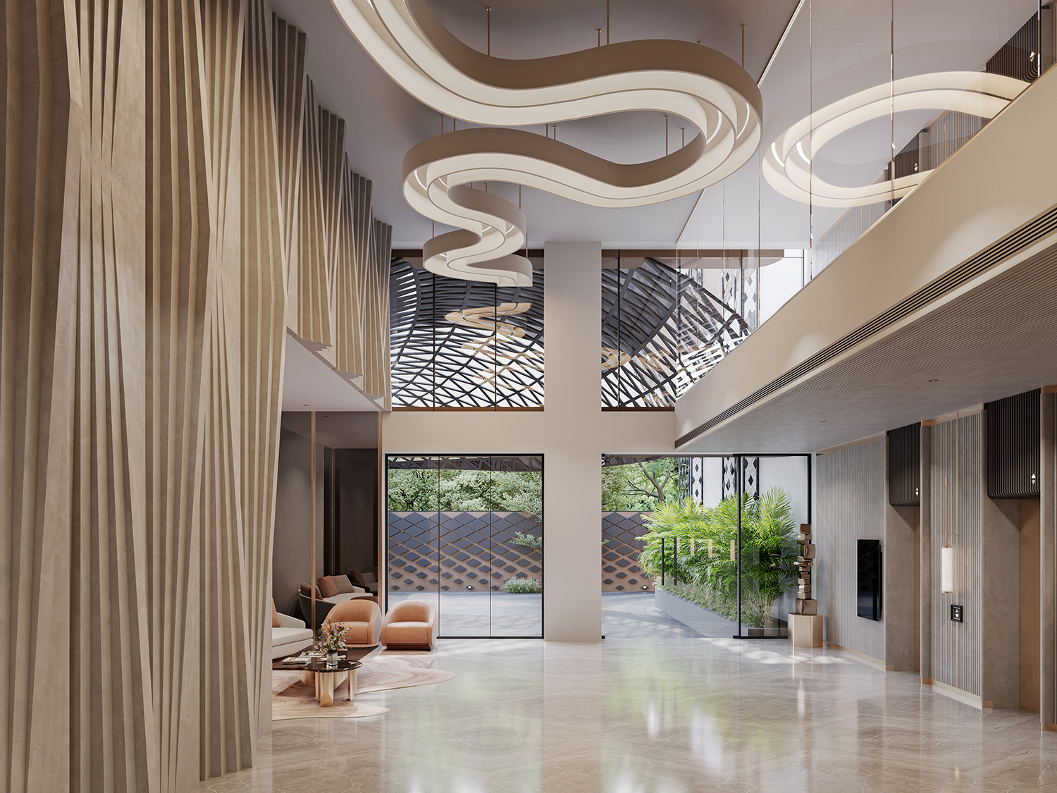The architecture brings a refined balance of clean lines, open volumes, and nature-led calm. Ample parking, leisure pockets, landscaped courtyards, and a breezy outdoor dining deck create an environment where work and movement feel effortless. Water features and greenery add a soothing, contemporary character—rarefied in busy urban settings.